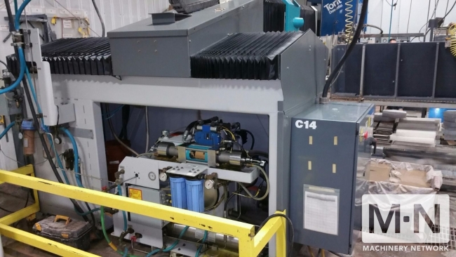 Flow Mach3- M3-1313b Waterjet System, Model year 2011 50"x50" work envelope 50i-S II ESL 60ksi Intensifier Pump with 1 spare ESL intensifier Current Hours: 10671.2 500 lb pressure abrasive hopper Dynamic Waterjet cutting head (for taper elimination) UltraPierce vacuum assist Spare Parts Included: · Component Name Quantity ESL intensifier 1 · 0.040” Mixing Tube 2 · 0.030” Mixing Tube 2 · 0.020” Mixing Tube 3 · 0.014” Orifice 4 · 0.010” Orifice 2 · 0.007” Orifice 7 · Metering Disc Set 1 · T750 10 BAR (150PSI) Abrasive Line 10+ ft. · Spare High Pressure Whip 1 · 1” Mixing Tube Spacer 2 · Nozzle Body 2 · Gland Nut Adapter (1/4” to 3/8”) 2 · AB Motor Home Prox Sensor 4 · Spare Kit 1 · Bleed Down Pump (60KSI) 1 · Bleed Down Rebuild 1 · On/Off Body (60KSI) 1 · Seal Rod 1 · Slip Wrench 1 · Girth Wrench 1 · Shift Pin 2 · Maintenance Swivel 1 · Maintenance On/Off 1 · On/Off Seal 1 · 60KSI Pump Maintenance Kit 1 For further information please call Harvey Geller at 818-455-8103