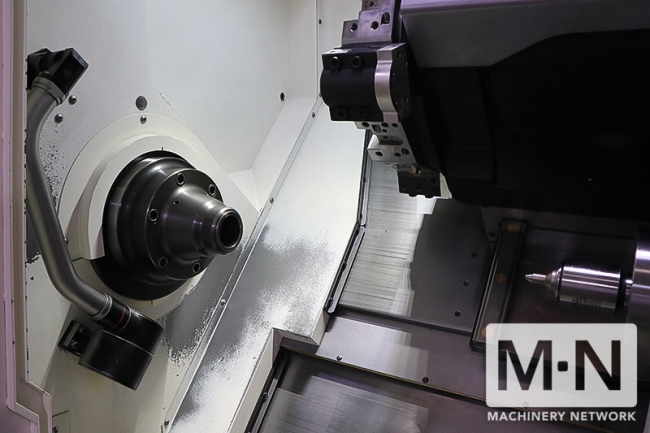 26.77" swing over bed, 26.97" distance between centers, 15.98" max turning diameter, 23.6" max turning length, 3" bore, 4,000 RPM, 24 HP, 12-station turret, chip conveyor, tailstock